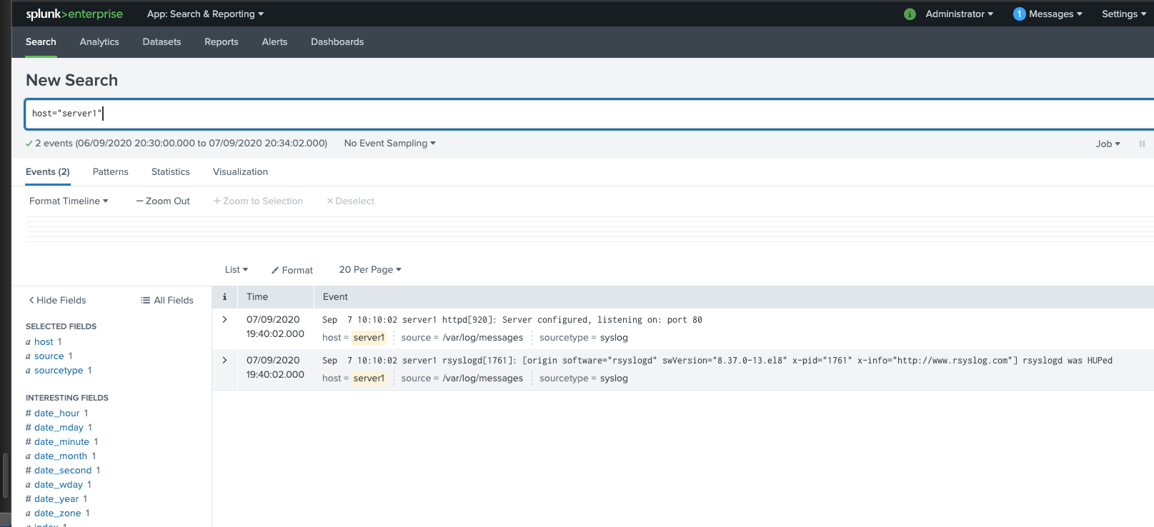 splunk forwarder data for server1